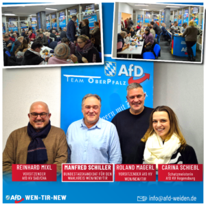 Am Donnerstag, dem 05.12.2024 hat der AfD Kreisverband Weiden in einer gut besuchten Versammlung seinen Spitzenkandidaten für den Wahlkreis Weiden-Neustadt-Tirschenreuth gewählt. Insgesamt nahmen 39 stimmberechtigte Mitglieder sowie 12 Gäste an der Versammlung teil.