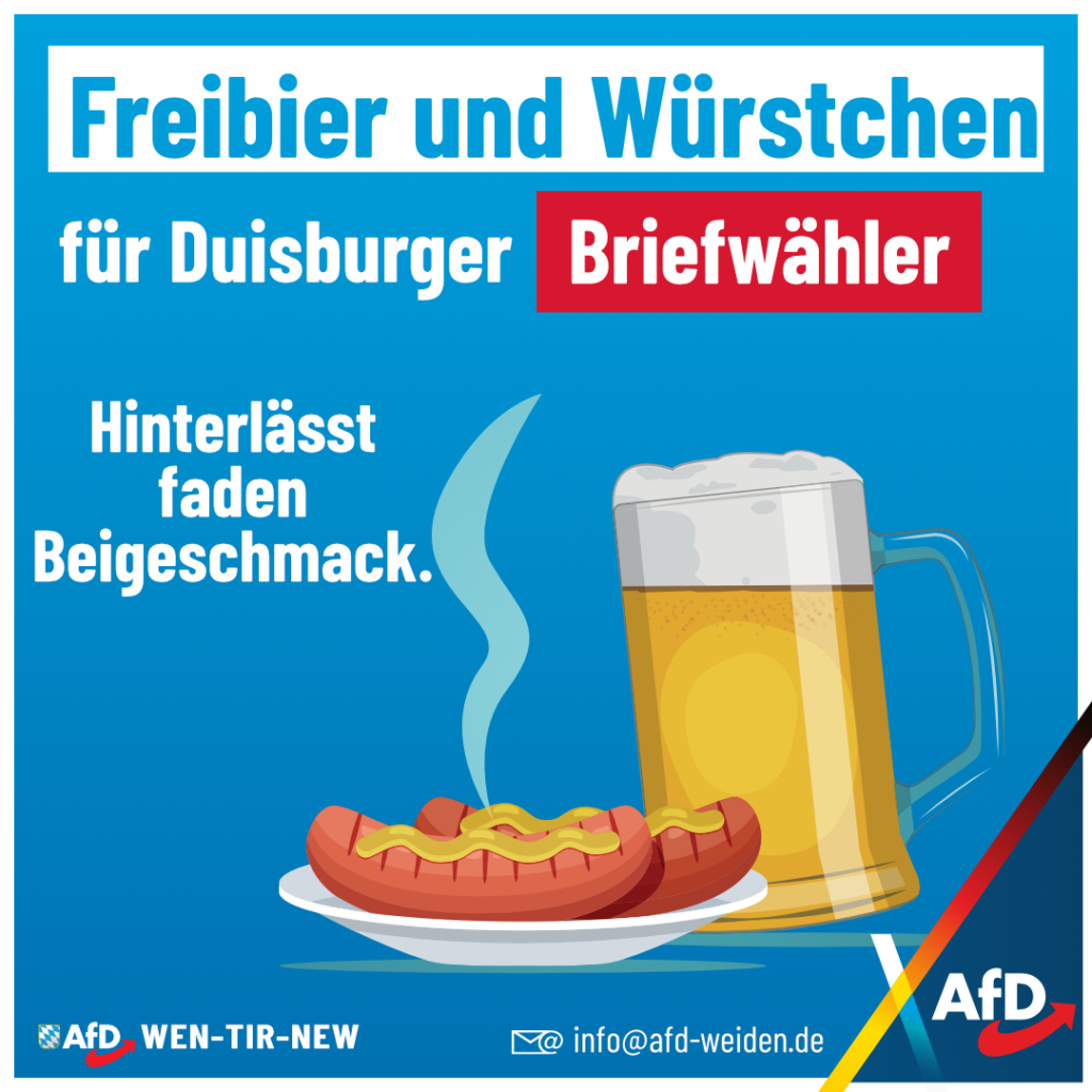 Freibier und Würstchen für Duisburger Briefwähler. Erinnert irgendwie an die Bratwurst für den Piks. Am 15. Februar 2025 plant der Hauptausschuss Duisburger Karneval eine Aktion, bei der Briefwähler im Bezirksamt […]