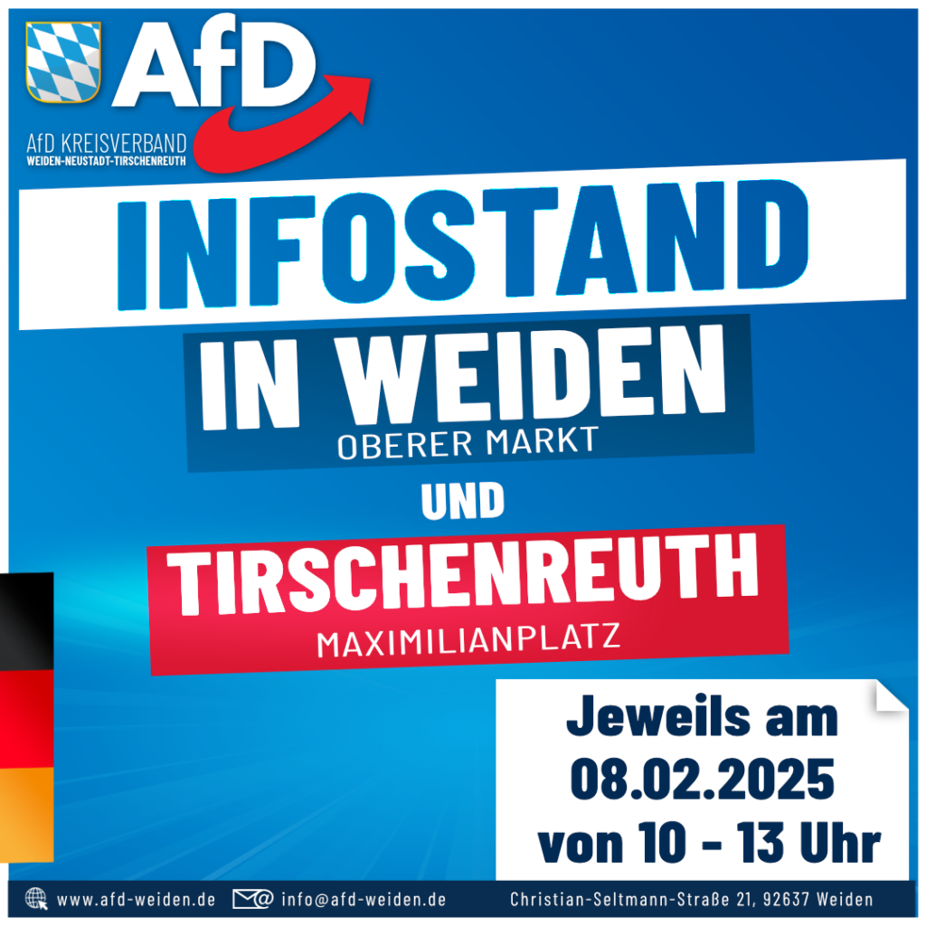 ℹ️ Diesen Samstag, 08.02.2025 bieten wir euch zwei Infostände an. Einen Infostand in Weiden (Oberer Markt) und einen in Tirschenreuth (Maximilianplatz) 📣 Jeweils am 08.02.2025 von 10 bis 13 Uhr. […]