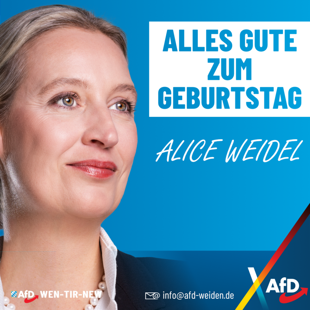 🎂🎉 Unsere Kanzlerkandidatin Alice Weidel hat heute Geburtstag. Liebe Alice wir wünsche dir alles alles Gute zum Geburtstag. Vor allem viel Glück, Gesundheit und maximalen Erfolg.