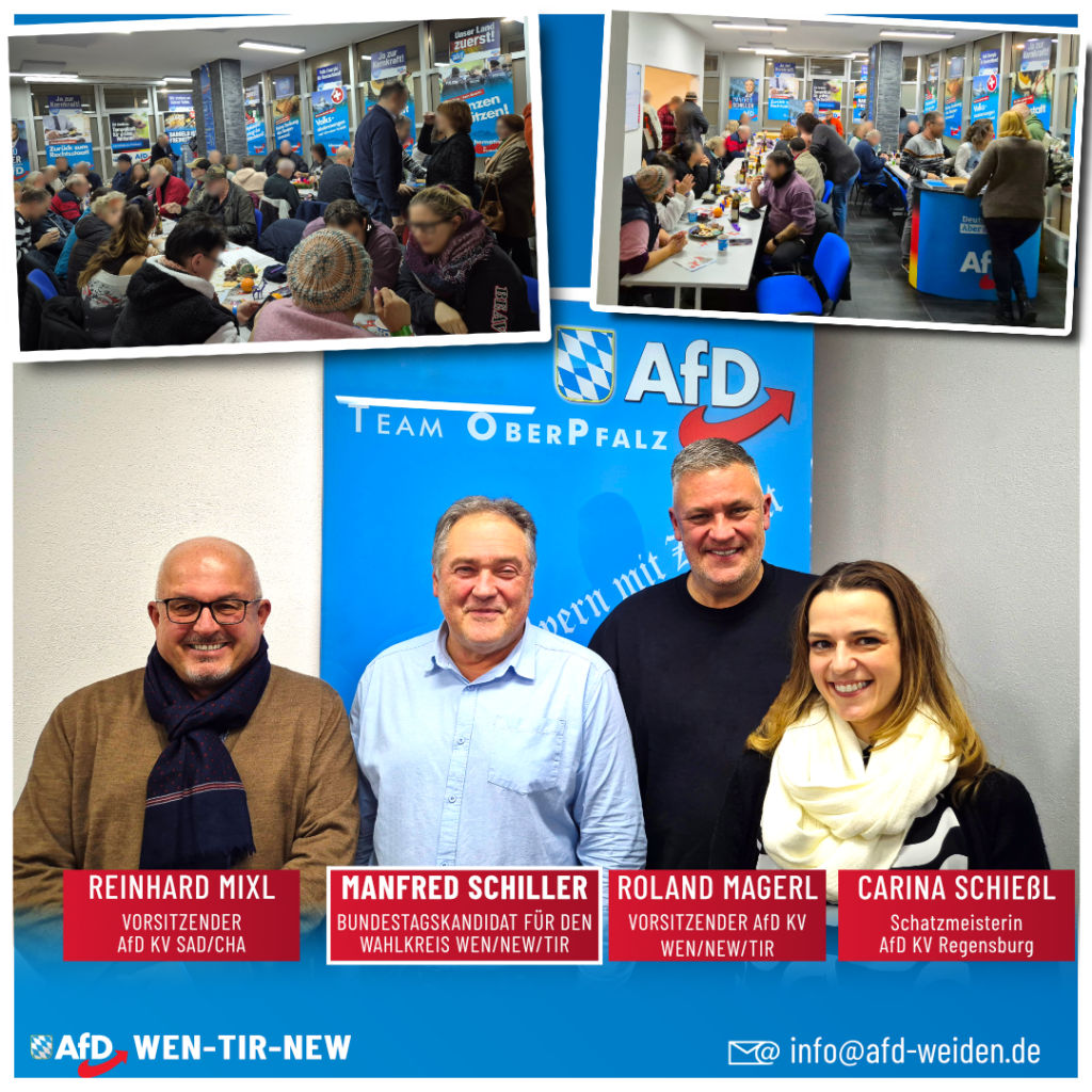 Am Donnerstag, dem 05.12.2024 hat der AfD Kreisverband Weiden in einer gut besuchten Versammlung seinen Spitzenkandidaten für den Wahlkreis Weiden-Neustadt-Tirschenreuth gewählt. Insgesamt nahmen 39 stimmberechtigte Mitglieder sowie 12 Gäste an […]