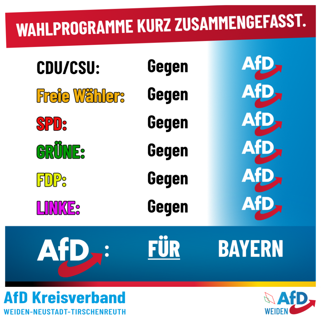 Der AfD Kreisverband Weiden – Neustadt – Tirschenreuth ist ab sofort auch auf WhatsApp vertreten. Hier könnt ihr euch aus erster Hand informieren. Die Community befindet sich noch im Aufbau […]