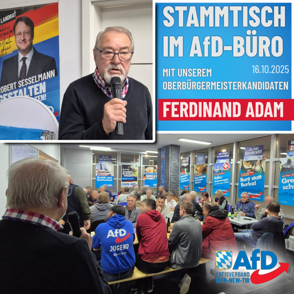 Wie jeden Donnerstag fand auch diese Woche wieder unser beliebter Stammtisch im AfD-Büro Weiden statt – mit ungebrochen hoher Teilnahme! 💪🇩🇪 Zahlreiche Mitglieder und interessierte Bürger kamen zusammen, um in […]