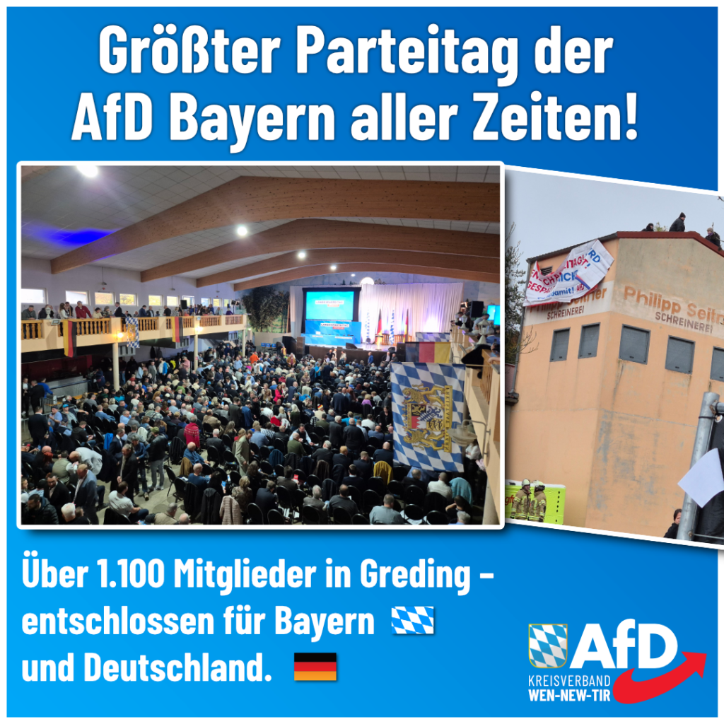 Über 1.100 Mitglieder auf dem Parteitag der AfD Bayern – das ist Basisdemokratie! Trotz lebhafter Debatten – wie sie in einer echten Volkspartei selbstverständlich sind – haben wir in Greding […]