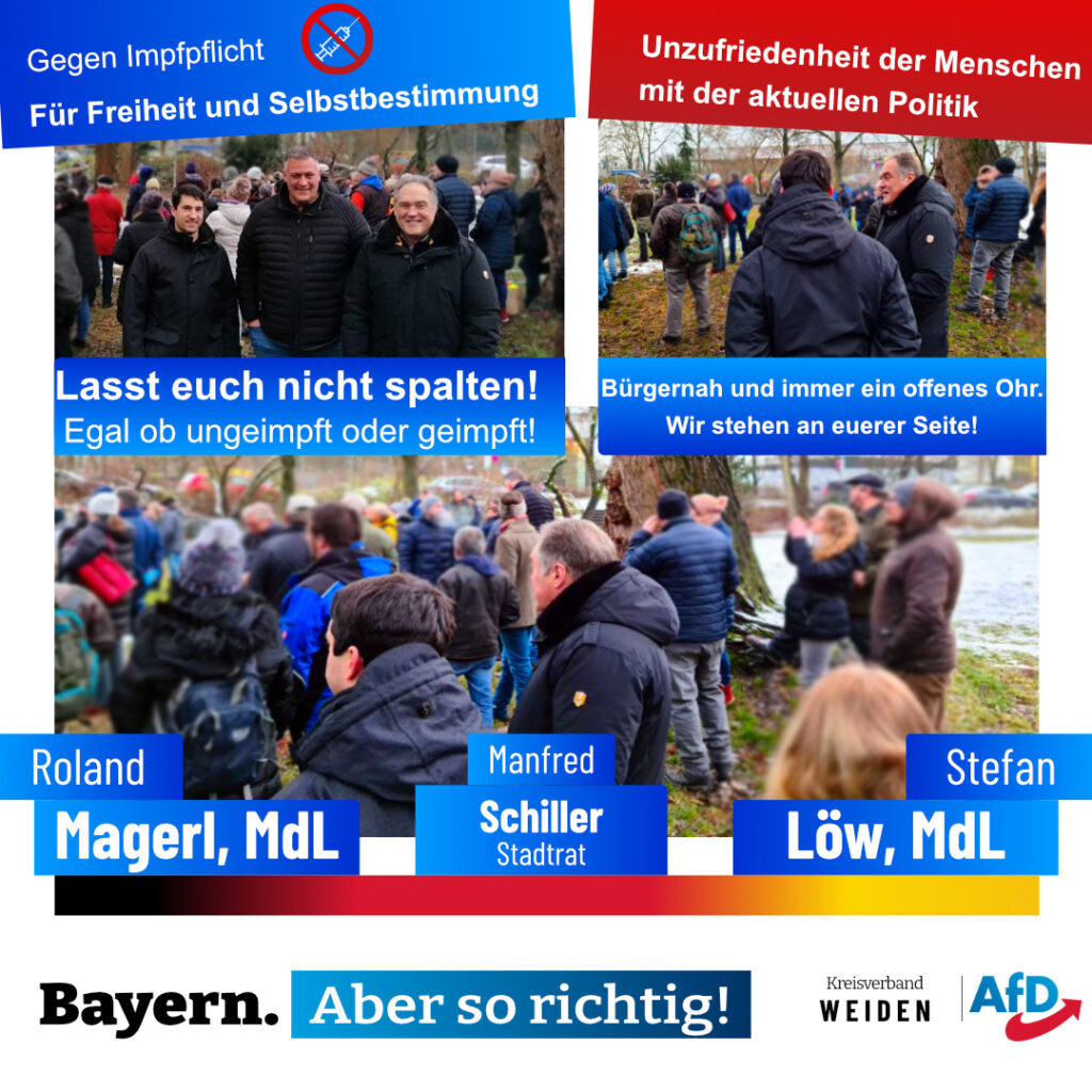 Gestern waren wir auf einer Kundgebung, gegen die drohende Impfpflicht, in Weiden Wir stehen nach wie vor zu: Impfen muss eine freiwillige Entscheidung sein! Wir haben viele Gespräche mit den […]
