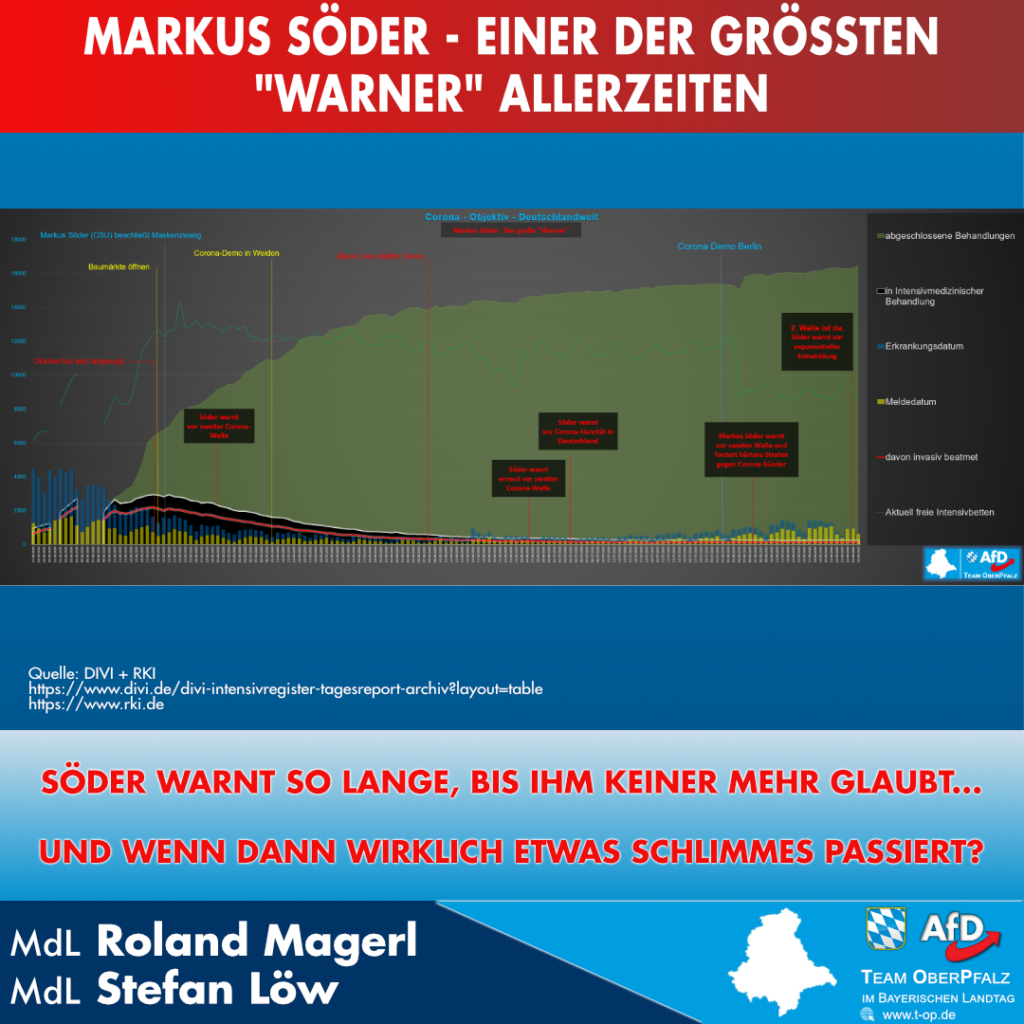 Bereits seit April warnt der Ministerpräsident vor einer „2. Welle“ (Tipp: „Söder warnt“ googeln) Diese blieb bisher zum Glück aus. Die Zahl der zu behandelnden Corona Patienten ist weiterhin […]