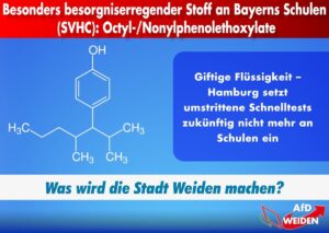 Die Flüssigkeit dieser Tests, enthält eine Chemikalie aus der Gruppe der Octyl-/Nonylphenylethoxylate – doch dieser Stoff ist in der Europäischen Union