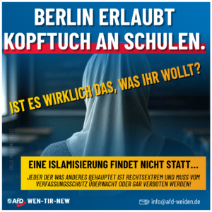 Jetzt soll das islamische Kopftuch an Berliner Schulen offiziell erlaubt werden – angeblich „nur, wenn der Schulfrieden nicht gestört wird“.
