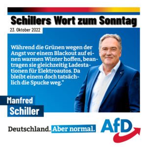 Da war es für mich wieder an der Zeit zu poltern. „Während die Grünen wegen der Angst vor einem Blackout auf einen warmen Winter hoffen, beantragen sie gleichzeitig Ladestationen für Elektroautos. Da bleibt einem doch tatsächlich die Spucke weg.“ Das hat gesessen.