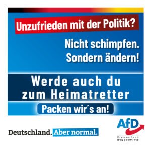 Werde auch du Teil des erfolgreichen, kameradschaftlichen und familiären AfD KV-Weiden Teams.