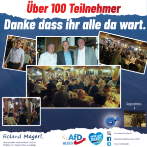 Der Stadtrat und Mitglied des Landesvorstandes der AfD in Bayern, Manfred Schiller, hatte dieses Politik-Schmankerl eingefädelt und weit über 100 Teilnehmer kamen und lauschten den interessanten und humorigen Ausführungen des prominenten Gastes.