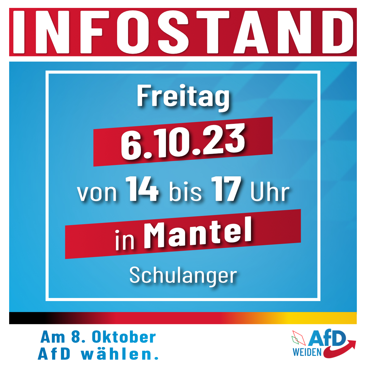 ℹ️ Infostand in Mantel am 6.10.2023