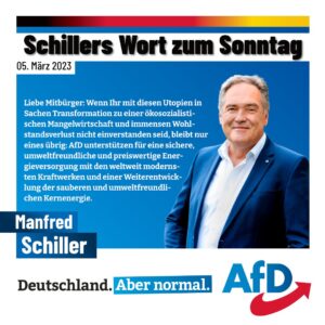 Liebe Mitbürger: Wenn Ihr mit diesen Utopien in Sachen Transformation zu einer ökosozialistischen Mangelwirtschaft und immensen Wohlstandsverlust nicht einverstanden seid, bleibt nur eines übrig: AfD unterstützen für eine sichere, umweltfreundliche und preiswertige Energieversorgung mit den weltweit modernsten Kraftwerken und einer Weiterentwicklung der sauberen und umweltfreundlichen Kernenergie.